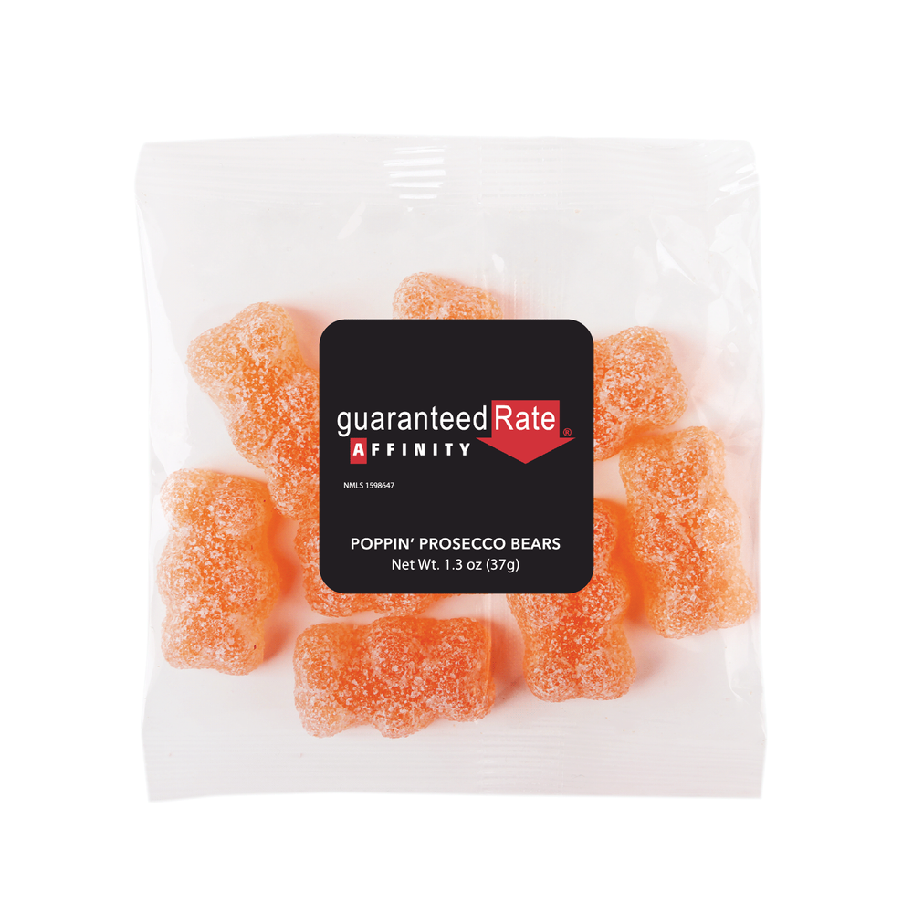 Pop, fizz, clink - it's time for a toast! Enjoy sweet prosecco-flavored gummy candy bears finished with tart sugar crystals. Non-alcoholic.